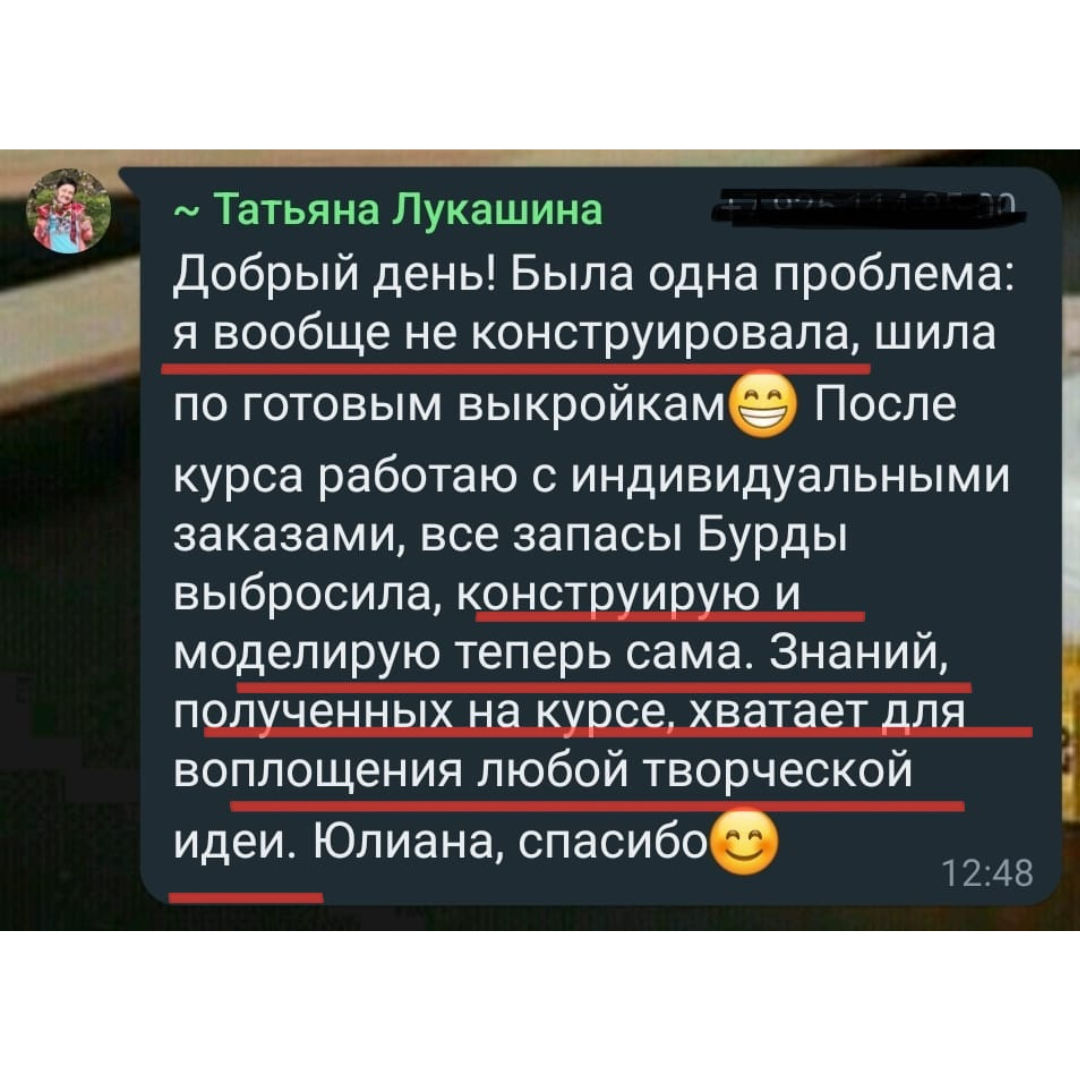 В результате вы сможете учесть все параметры вашей фигуры и построить выкройку по собственным меркам