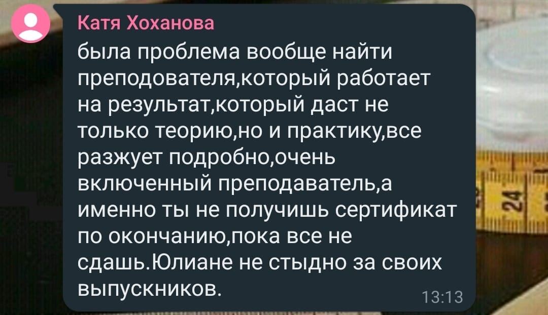 — Знает все о нестандартных фигурах, автор публикаций на крупнейшем швейном портале «Осинка», рассказывает просто о сложном.