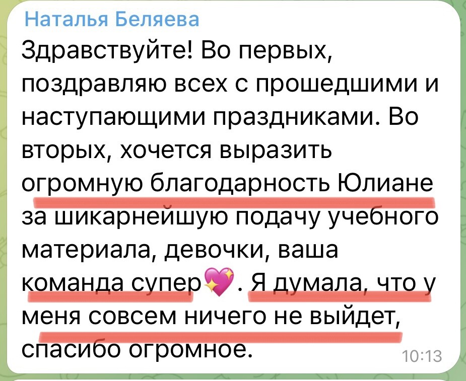 Вы получите персональные рекомендации по абсолютно любому вопросу и сможете вовремя скорректировать процесс, если это необходимо!